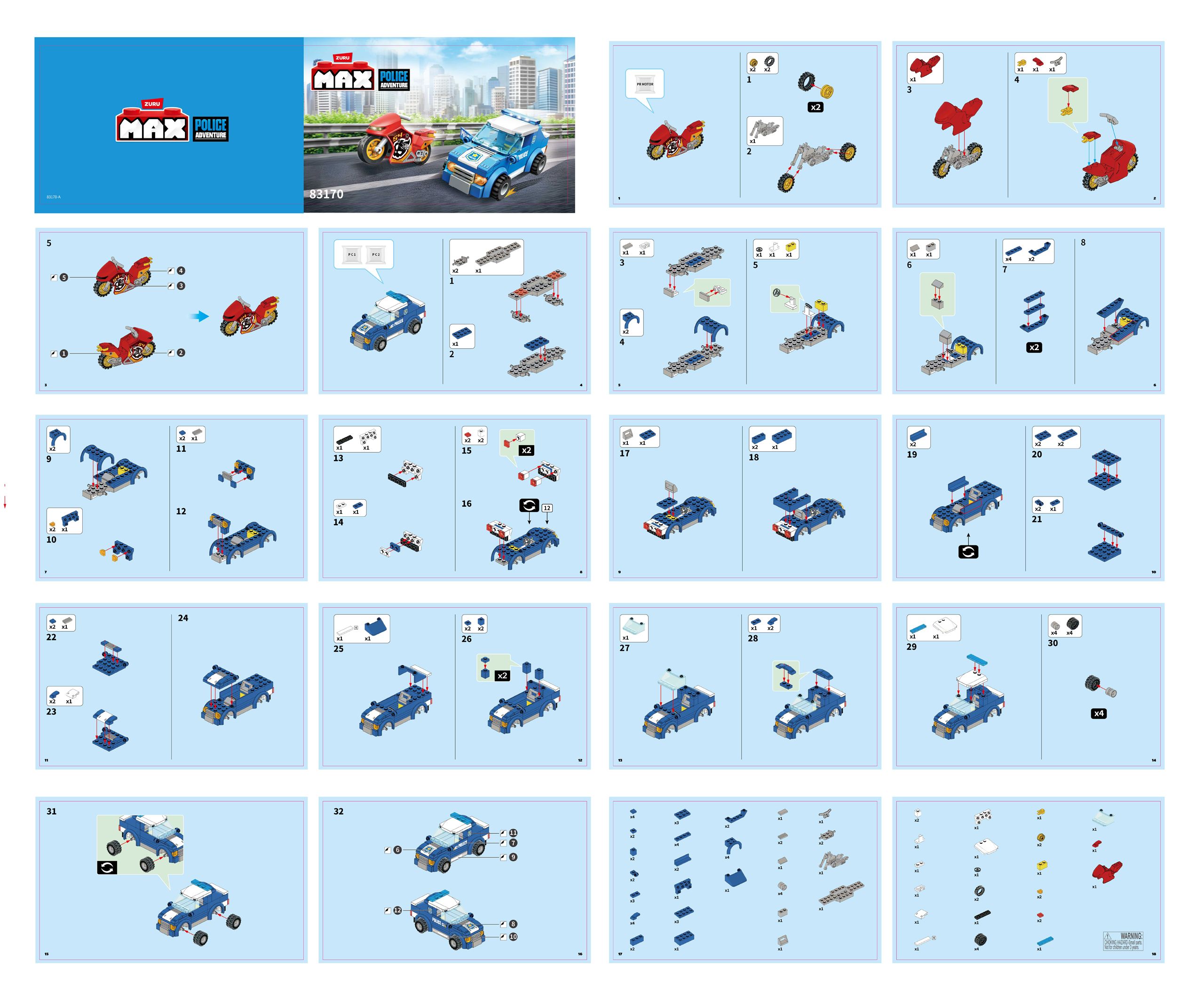 Erschaffe ein MAX Abenteuer mit MAX! Erschaffe das ultimative Verfolgungsabenteuer und baue die MAX Polizeiverfolgungsjagd zusammen. Hilf der MAX Polizei, die Räuber zu schnappen. Verfolge die Räuber in deinem MAX Polizeiauto! Dieses MAX Abenteuer besteht aus 125 hochwertigen MAX-Bausteinen und enthält eine leicht verständliche Anleitung.
